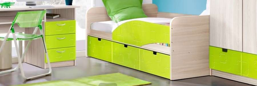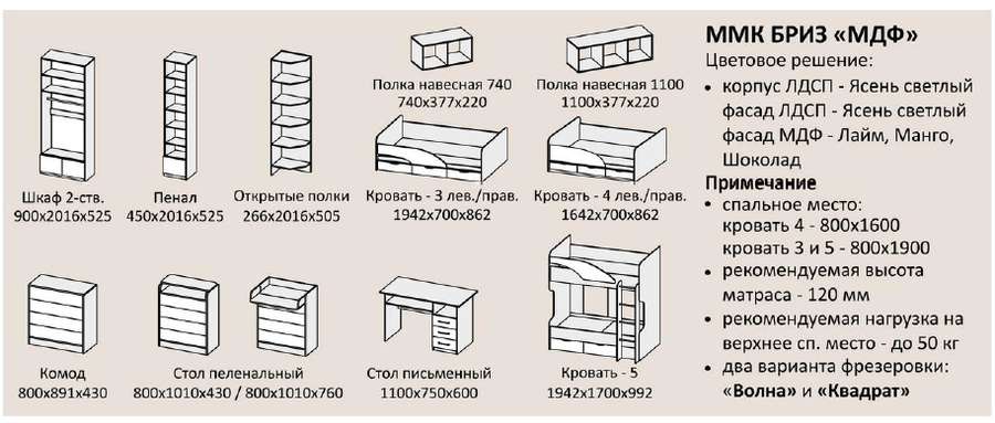 Цвет: Фасады серии детской мебели "Бриз" выполнены в двух цветах: Лайм и Шоколад. Корпус выполнен в приятном цвете Ясень светлый. Фрезеровка Волна и Квадрат.