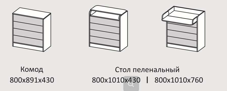 - Стол пеленальный, Габариты мм (ШхВхГ):800х1010х430/760- 6500 руб. / 7200 руб.