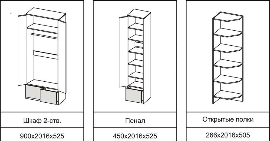 - Шкаф 2-х ств. платяной с выдв. ящиками. 900х2016х525 мм, (ШхВхГ).-8900 руб. - 7100 руб.