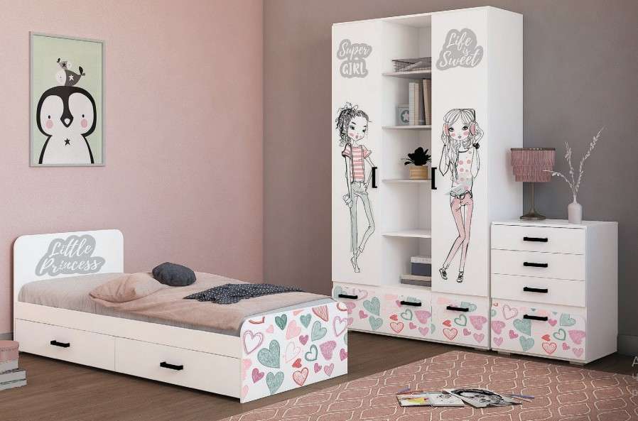 Детская «Акварель-1» с красивой фотопечатью на фасадах, отличается мягкостью, теплотой, особым уютом, что очень актуально для интерьера комнат для маленьких и подростков.