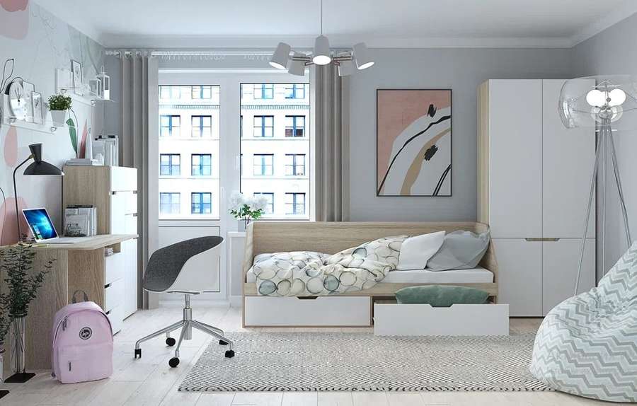Детская Анталия - это простота и лаконичность, которая особенно подходит для городских квартир. Фасады матовые. Изготовлены в пленке с эффектом Soft Touch. Это создает ощущение мягкости и бархатистости на ощупь!