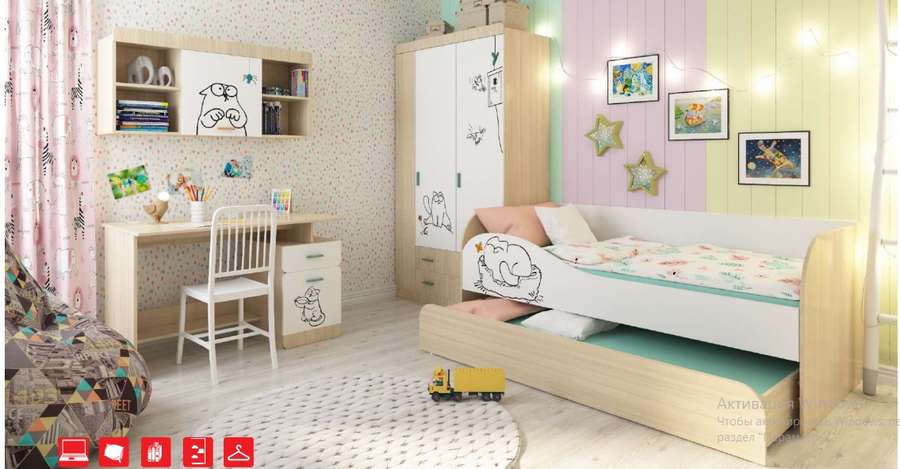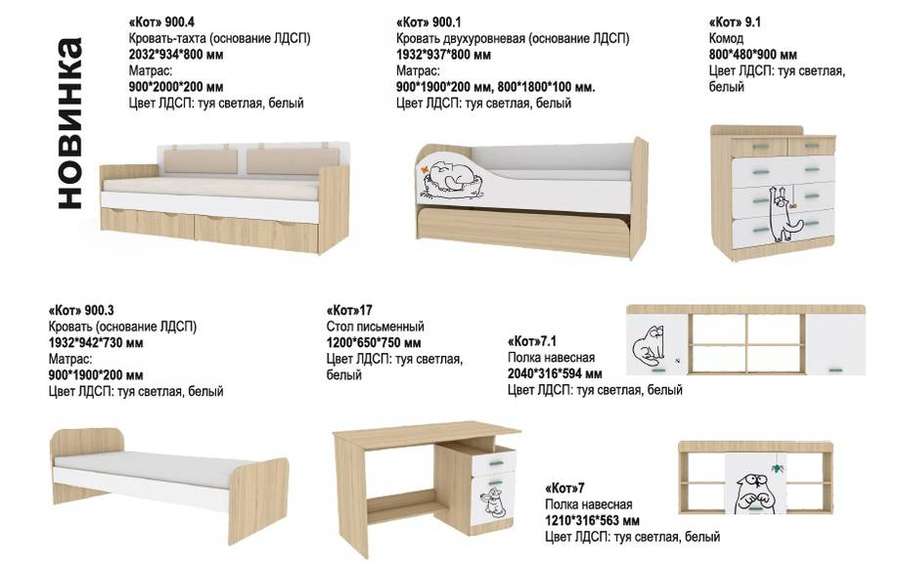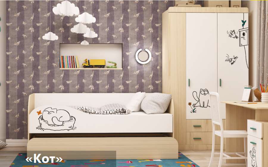 Новинка этого летнего сезона от производителя Аквилон - удобная и безопасная мебель для вашего ребенка. На фасадах изображен милый мультяшный котик, что создаст веселую атмосферу в детской комнате.