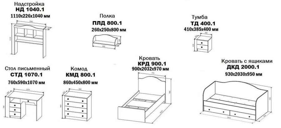 Цена указана за комплектацию на первой фото: Шкаф 900 с ящиками, Стеллаж угловой, Кровать 900 с ящиками, Тумба, Стеллаж 450 с ящиками, Шкаф 450 с ящиками, Комод.