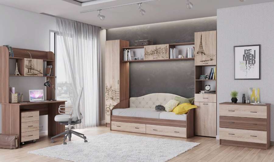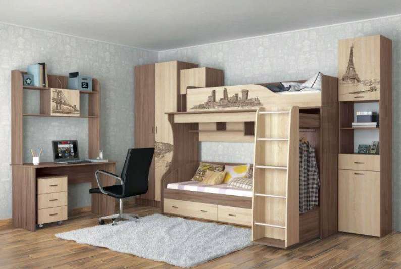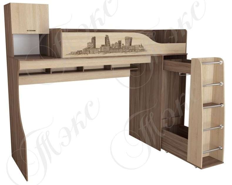 Композиция для детской спальни Орион - идеальное решение как для просторной комнаты, так и для малогабаритной квартиры. Широкий выбор модулей: функциональная кровать-чердак с встроенным шкафом, пенал с выдвижными ящиками, полноценный комбинированный шкаф со стандартной штангой и полками. Классические цвета исполнения прекрасно сочетаются с дизайнерскими изображениями городов мира, нанесенными на фасады методом цветной фотопечати.