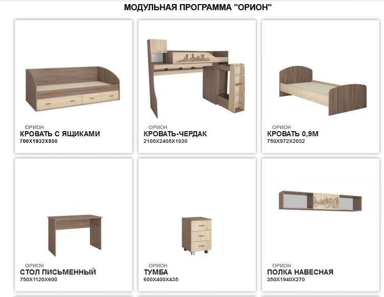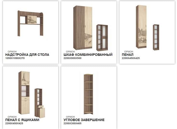 Состав и стоимость модулей, входящих в детскую Орион: