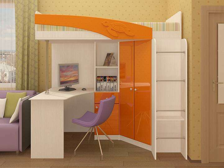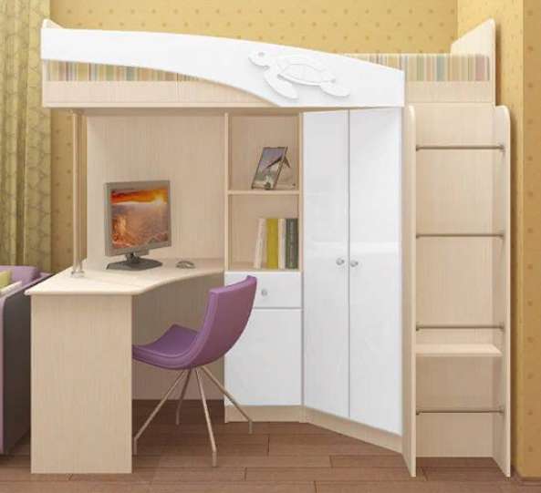 Детская Бэмби - полноценный детский комплекс, в котором спальное место (2,0х0,8) расположено "на 2-ом этаже". Внизу находится удобное рабочее место и полноценный угловой шкаф. Детская Бэмби изготовлена из ЛДСП, фасады выполнены из МДФ. Возможны различные цветовые гаммы фасадов МДФ, что позволяет удовлетворить запросы каждого покупателя.
