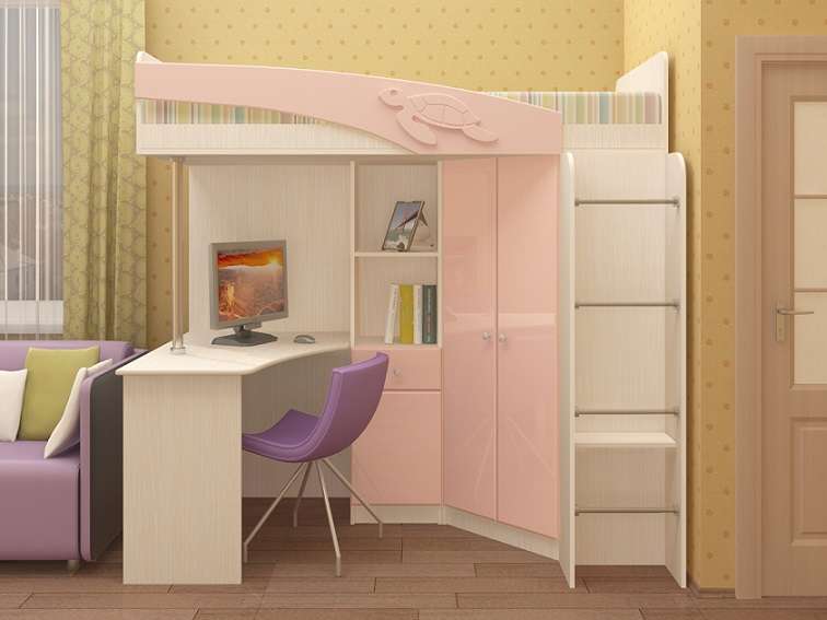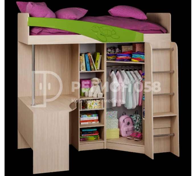 Кровать-чердак «БЕМБИ» МДФ разл. цветовые решения (Регион 058)