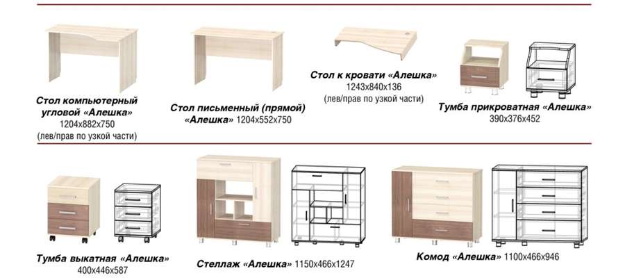 Состав Коллекции АЛЕШКА: (ШхГхВ) мм.