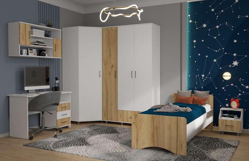 Модульная детская «АЛЕШКА» Белый текстурированный/Дуб бунратти
