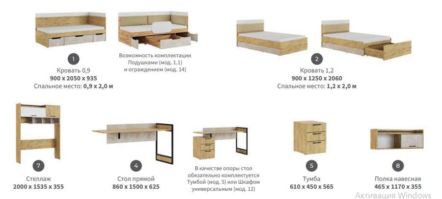 Набор мебели для детской включает в себя разнообразные модули,что позволяет Вам подобрать мебель по вашему усмотрению и предпочтению.