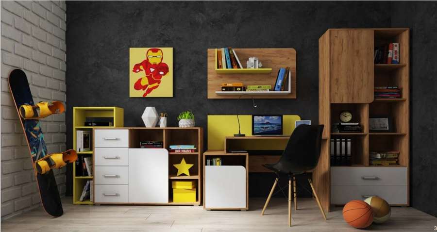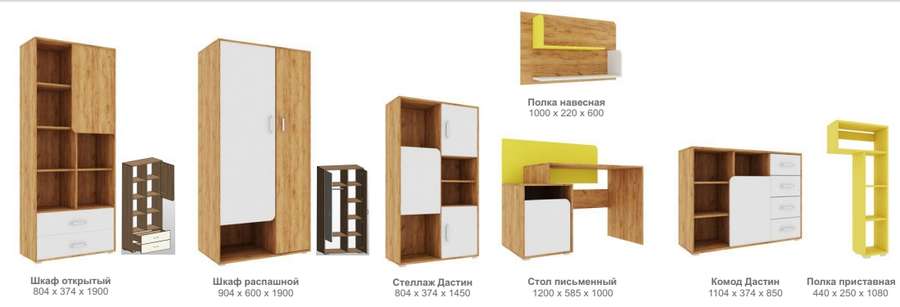 Дастин – модульная программа мебели для молодежной комнаты, выполнена в современных цветовых комбинациях. Модульность набора предоставляет различные возможности в создании разных компонентов интерьера одного и того же помещения, делая его индивидуальным и стильным.