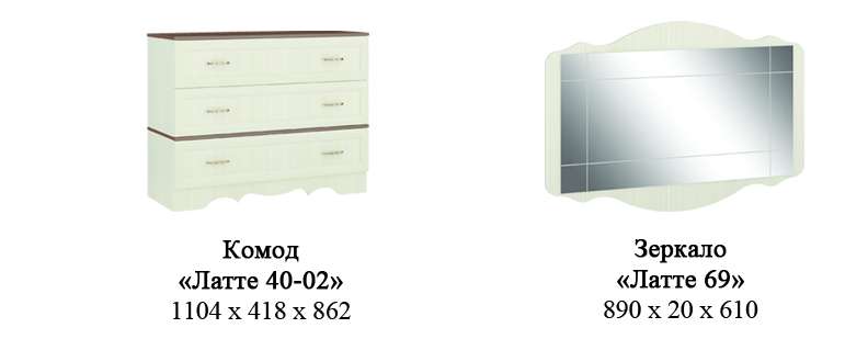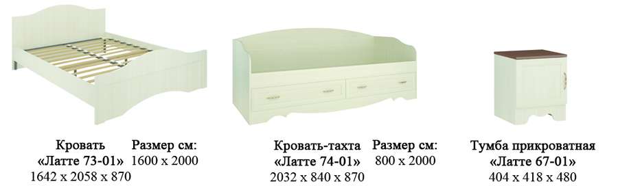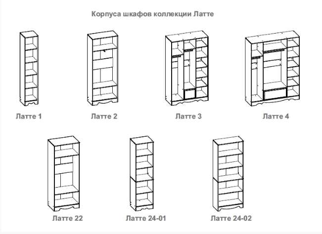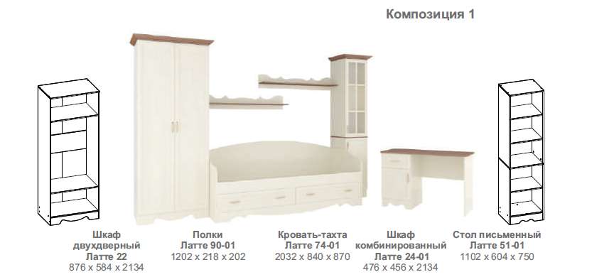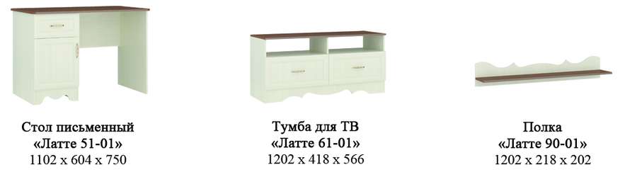 Состав коллекции ЛАТТЕ ( ШхГхВ):