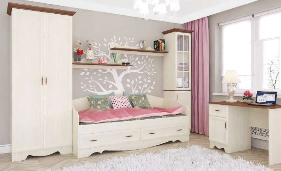 МОДУЛИ: Кровать - Тахта, Шкаф 2-х дв. №22, 2 Полки 90-01, Шкаф 24-01, Стол.