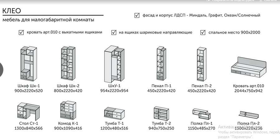 Набор мебели «КЛЕО» комплектация-1 (модульная)