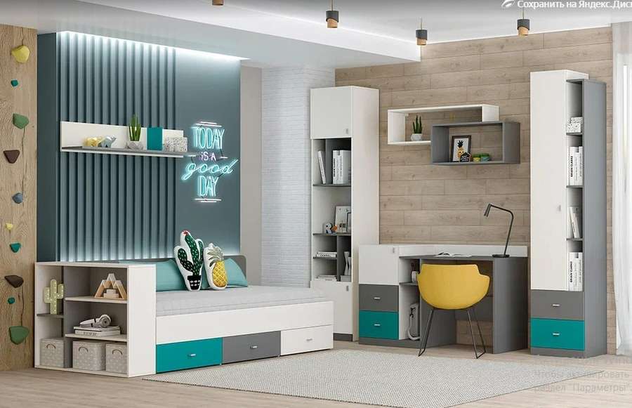 Детская КЛЕО способна хорошо вписаться в дизайн практически любой детской комнаты. За счёт своей многофункциональности она долгое время будет оставаться для ребёнка удобной и комфортной, а яркие акценты в виде разноцветных фасадов поднимать настроение и радовать глаз.