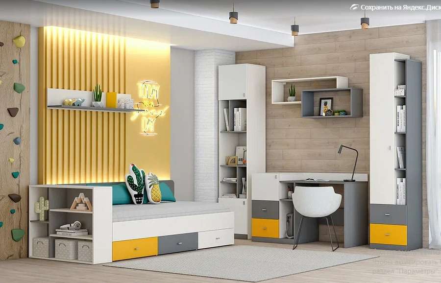 На сайте указана стоимость за комплектацию на фото: Кровать арт.010, Полка Пл-2, Тумба Т-2, Полка Пл-1, Пенал П-1, Пенал П-2, Стол Ст-1.
