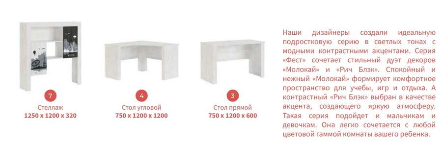 Цена на сайте указана за комплект: Кровать 0,8м (Моуль 1), Стол прямой Фест (модуль 3), Стеллаж Фест (модуль 7), Шкаф узкий Фест (модуль 8), Шкаф угловой Фест (модуль 10)