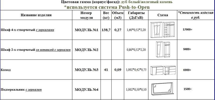 Гарнитур «Норд» конструкционно прост и лишен роскошных аксессуаров. Привлекательным и уникальным его делают современные цвета Дуб белый/ Железный камень. В открывании используется система Push-to-Open .