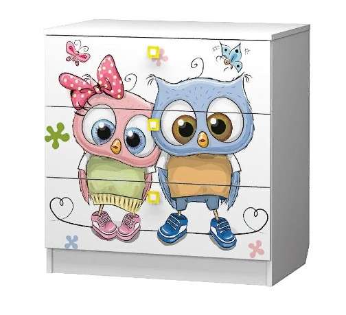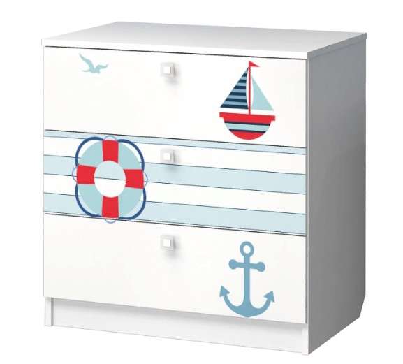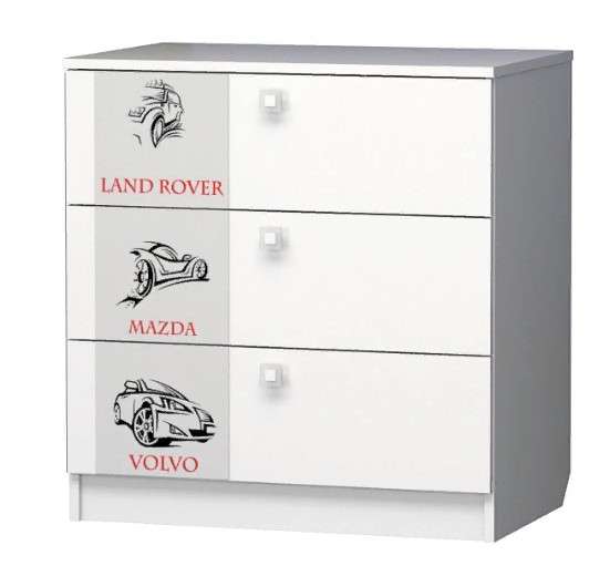 Комод имеет три вместительных ящика полного выдвижения, в которых с легкостью можно разметить как постельное белье так и одежду.