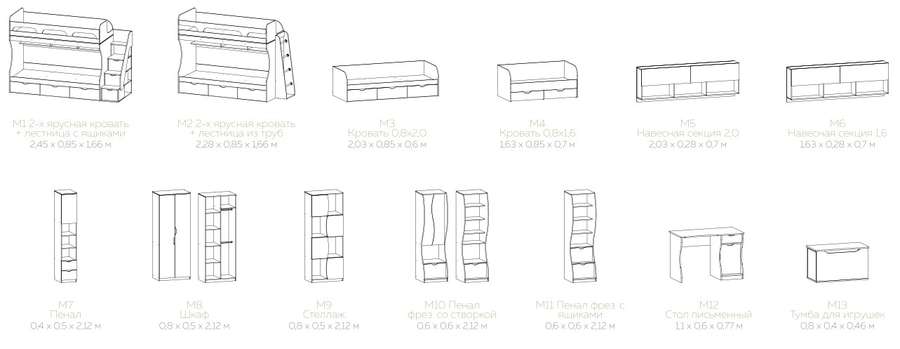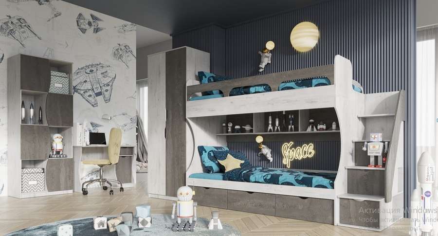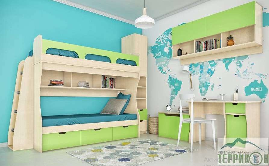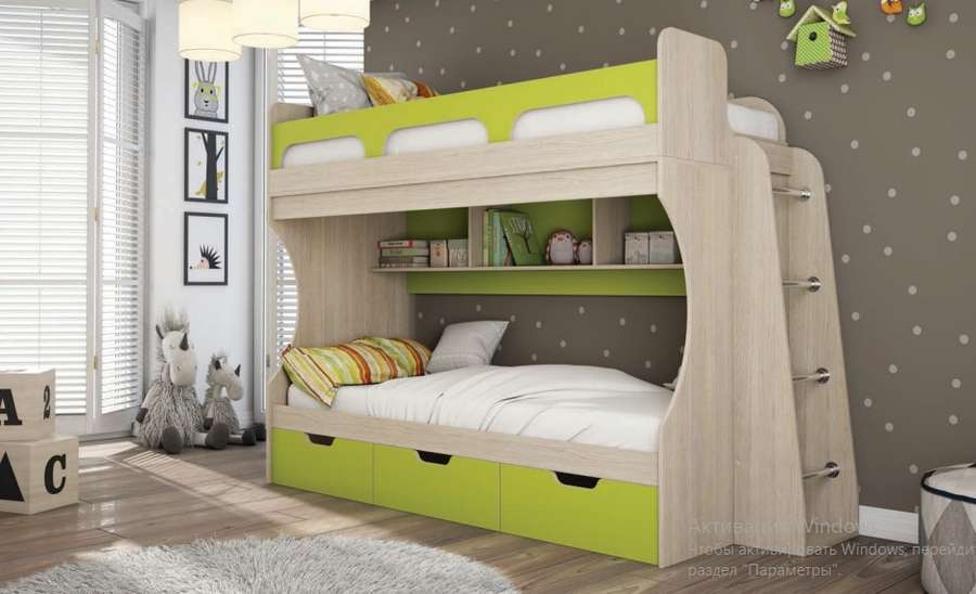 Кровать с хромированной лестницей «Киви» из модульной серии для детей и подростков.