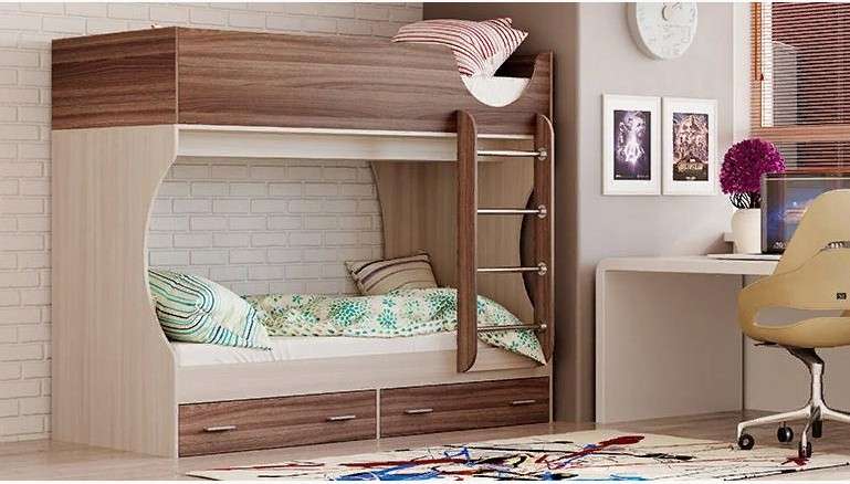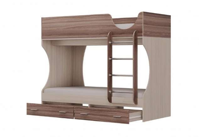 - Двухъярусная кровать Д2 - прекрасный выбор, когда нужно разместить двоих детей в небольшой по площади комнате с одинаковым комфортом. Верхний ярус сопровожден бортиком для большей безопасности, а в основании нижнего яруса имеются 2 ящика для хранения постели.