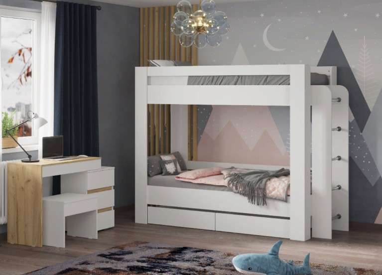 Уютная, компактная, функциональная двухъярусная кровать - замечательное решение для маленьких детских и для семей с двумя детьми. Она отлично оптимизирует пространство и экономит квадратные метры, а выкатные ящики добавят удобства при эксплуатации.