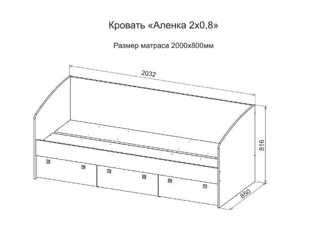 Габаритные размеры: 2032х850х816 мм. (ШхГхВ). Спальное место 800х2000мм.