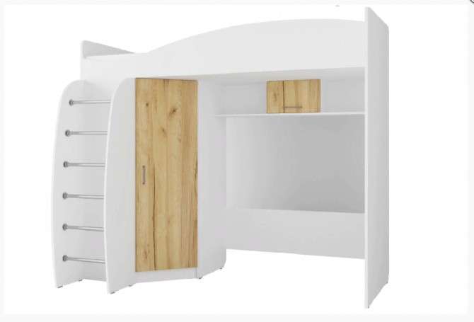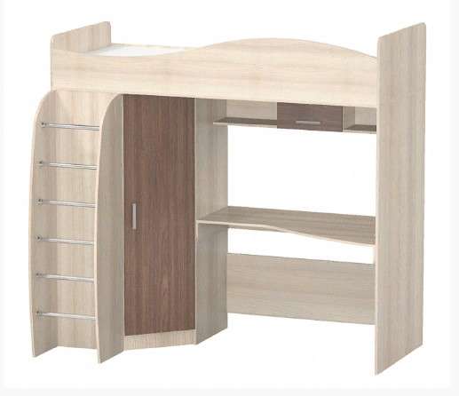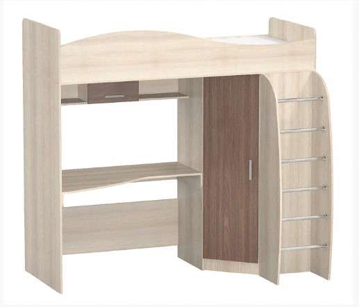 Кровать 2-х ярусная (Чердак) Алешка - из модульной коллекции мебели АЛЕШКА для детской комнаты. Кровать может быть Правая и Левая , определяется по шкафу: если шкаф слева- Левая кровать, если шкаф справа- Правая кровать. При заказе уточнять.