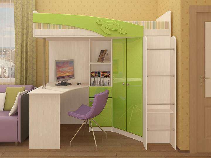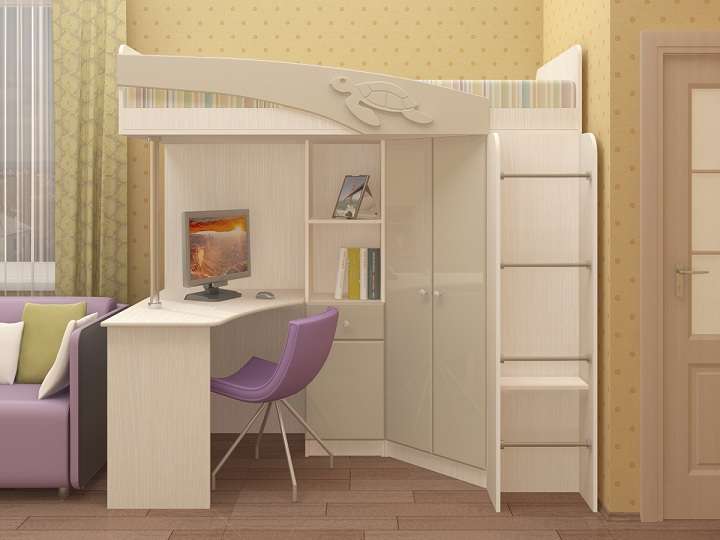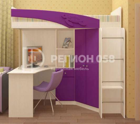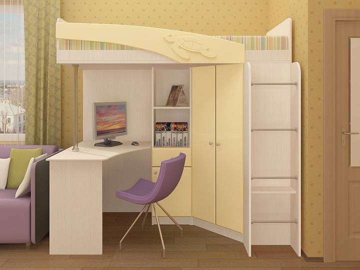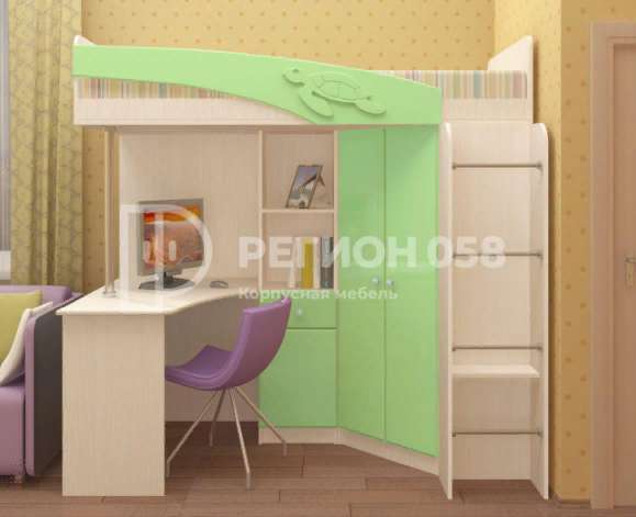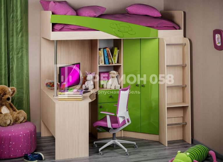 Детская Бэмби - полноценный детский комплекс, в котором спальное место (2,0х0,8) расположено "на 2-ом этаже". Внизу находится удобное рабочее место и полноценный угловой шкаф. Детская Бэмби изготовлена из ЛДСП, фасады выполнены из МДФ. Возможны различные цветовые гаммы фасадов МДФ, что позволяет удовлетворить запросы каждого покупателя.