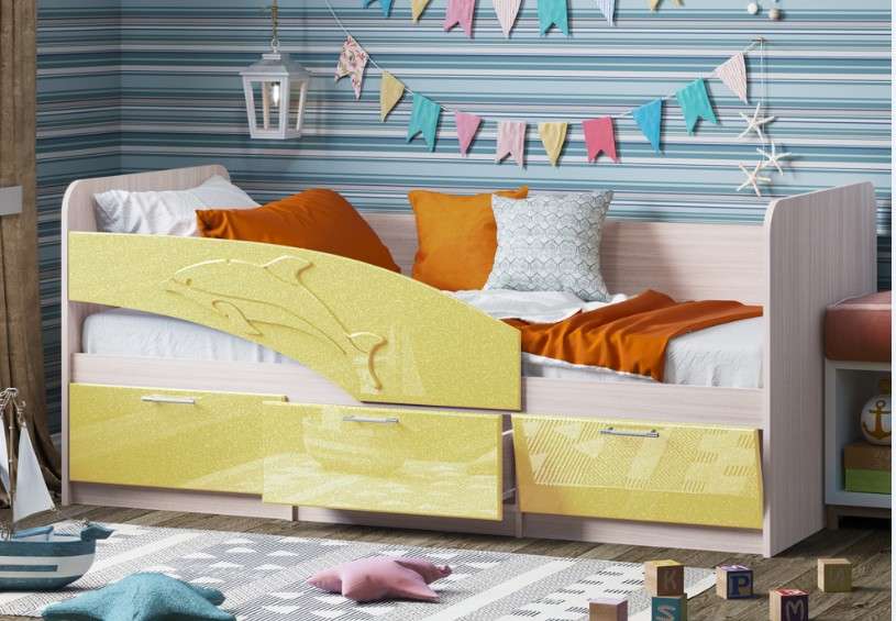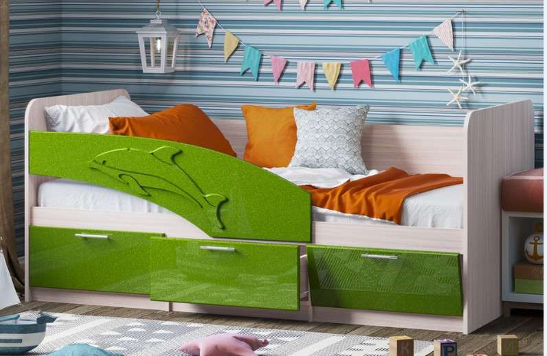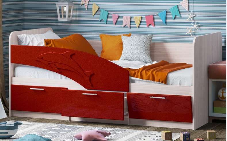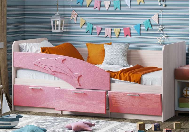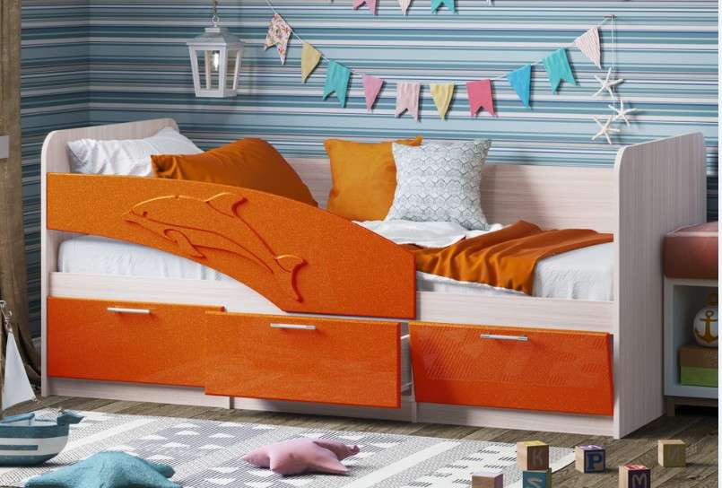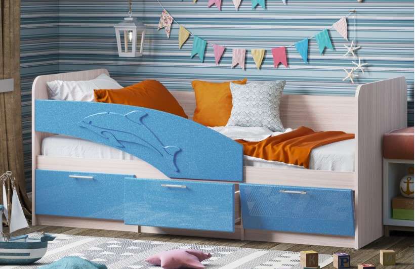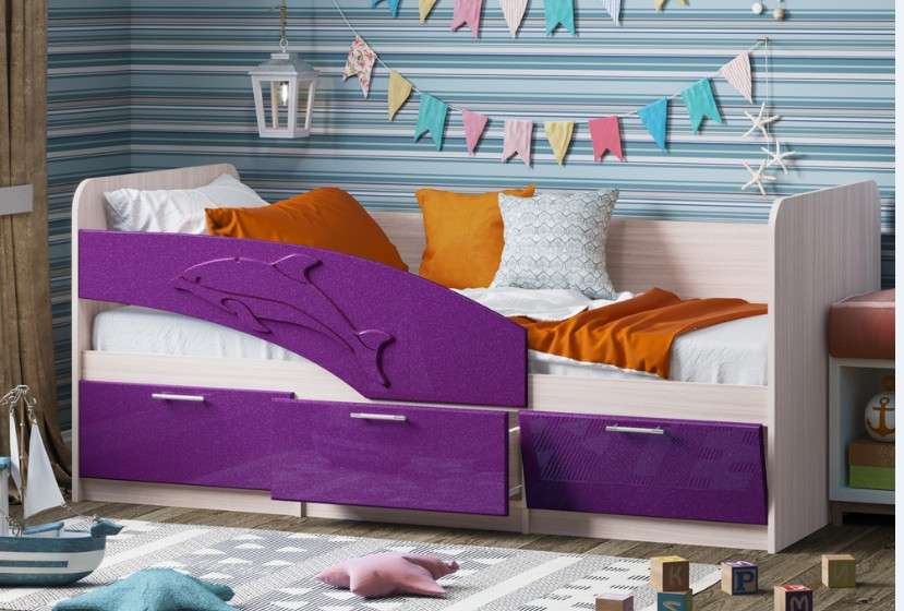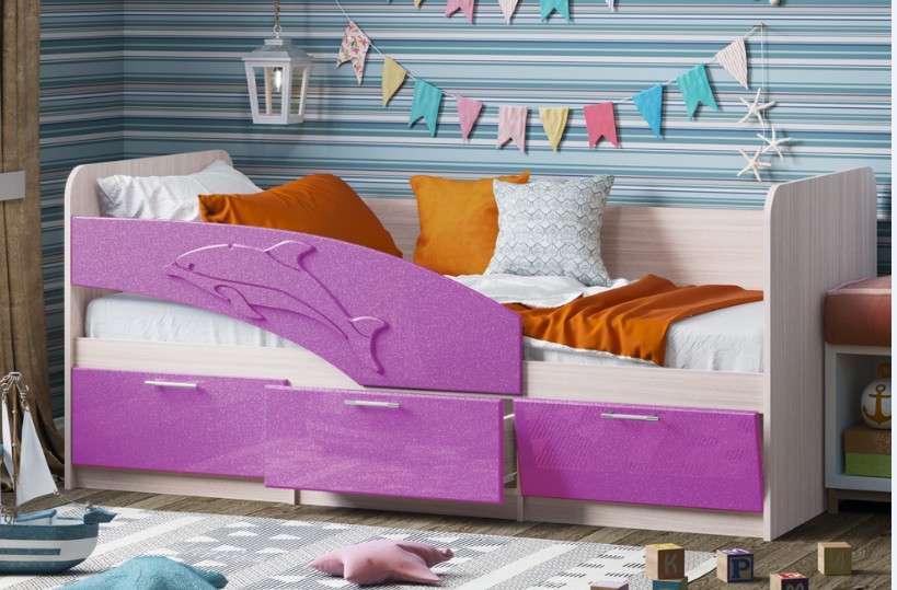 Кровать может выполняться в 2-х размерах -1,6м и 1,8м. Бортик с дельфином может быть,как левый ,так и правый. ПРИ ЗАКАЗЕ УТОЧНЯТЬ.