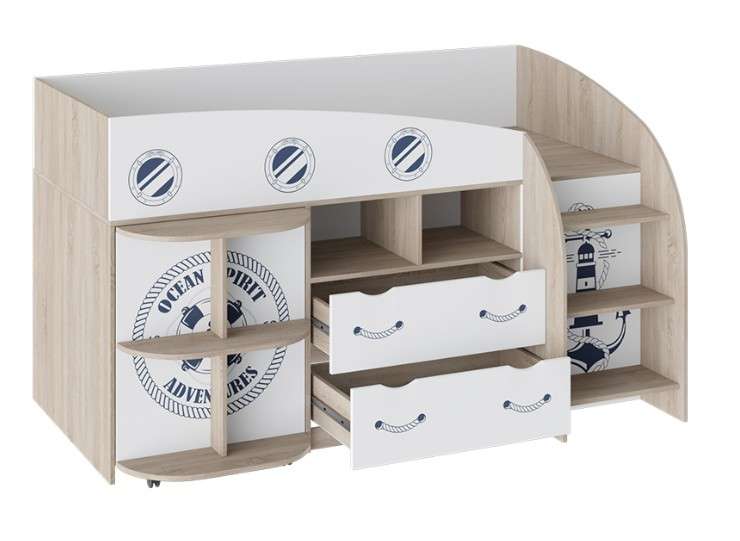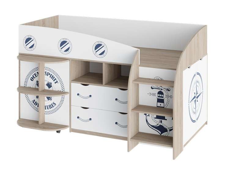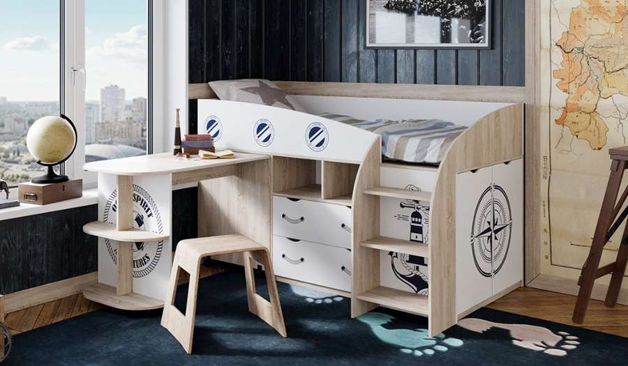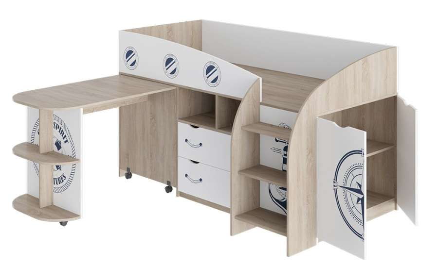 Кровать комбинированная "НЕМО" - это функциональный уголок ребенка, где он может отдыхать, рисовать и хранить в ящиках свои вещи и игрушки. Кровать состоит из спального места 80х180, письменного стола, ящиков ((Роликовые направляющие) и шкафчика. Рекомендуется комплектовать матрасом высотой не более 130 мм.