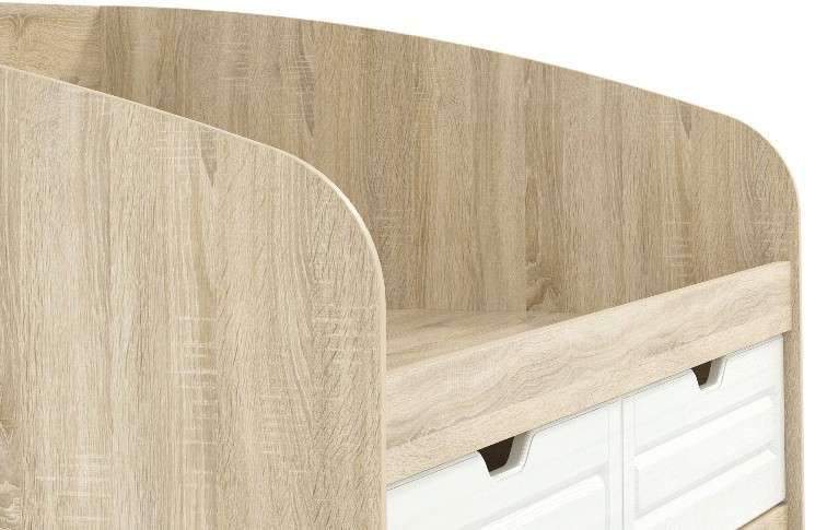 Одноместная кровать Оливия НМ 008.63 с лаконичным дизайном идеально подходит для оформления уютного спального уголка в детской. Вместительные бельевые ящики с интегрированными ручками удобны для хранения постельных принадлежностей. Боковая спинка предотвращает истирание настенного покрытия. Кровать полностью безопасна для ребенка: у модели нет острых углов и накладных ручек на фасадах ящиков.