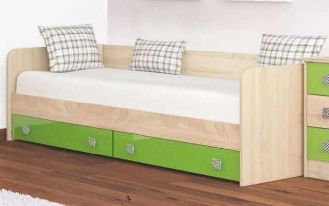 Кровать с ящиками Колибри является модулем детской Колибри и изготавливается с фасадами трех цветов.