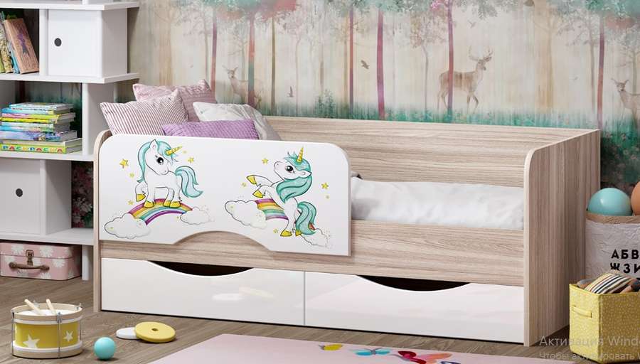 Очень красивая кровать со сказочными персонажами на фасаде, доставит радость вашему ребенку,имеет два выдвижных ящика.