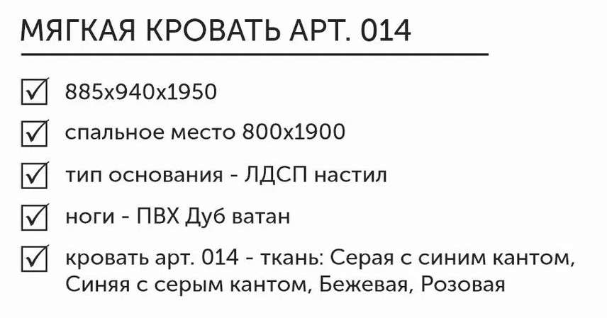 Размер: 885х940х1950 мм, (ШхВхГ). Спальное место 800х1900 мм.