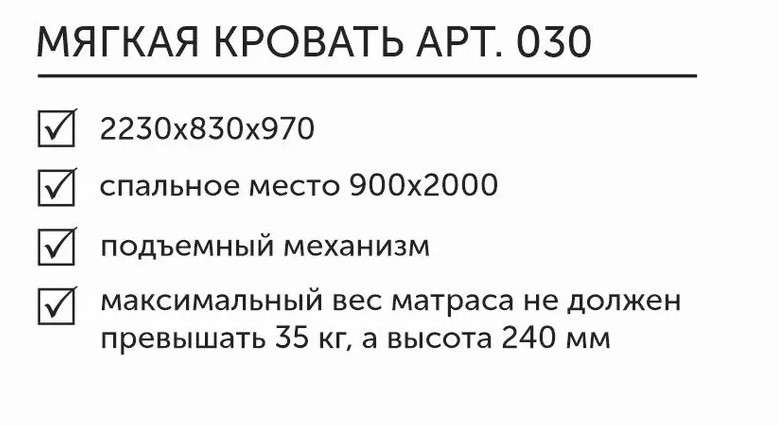 Размер: 2230х830х970 мм, (ШхВхГ). Спальное место 900х2000 мм.