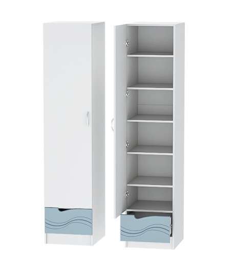 Пенал выступает функциональным и очень удобным дополнением к имеющейся мебели в детской. Он позволяет с лёгкостью разместить внутри постельное бельё, одежду и другие предметы обихода благодаря вместительным полкам и удобному выдвижному ящику.