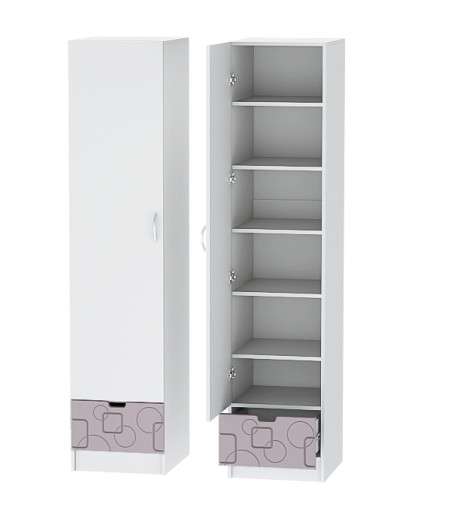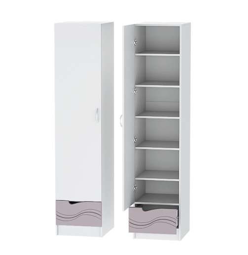 Пенал выступает функциональным и очень удобным дополнением к имеющейся мебели в детской. Он позволяет с лёгкостью разместить внутри постельное бельё, одежду и другие предметы обихода благодаря вместительным полкам и удобному выдвижному ящику.