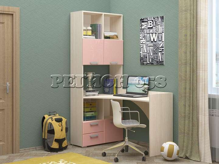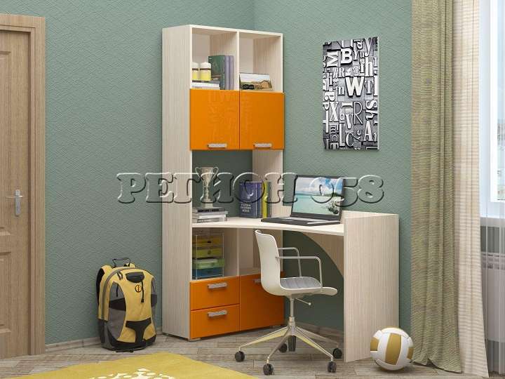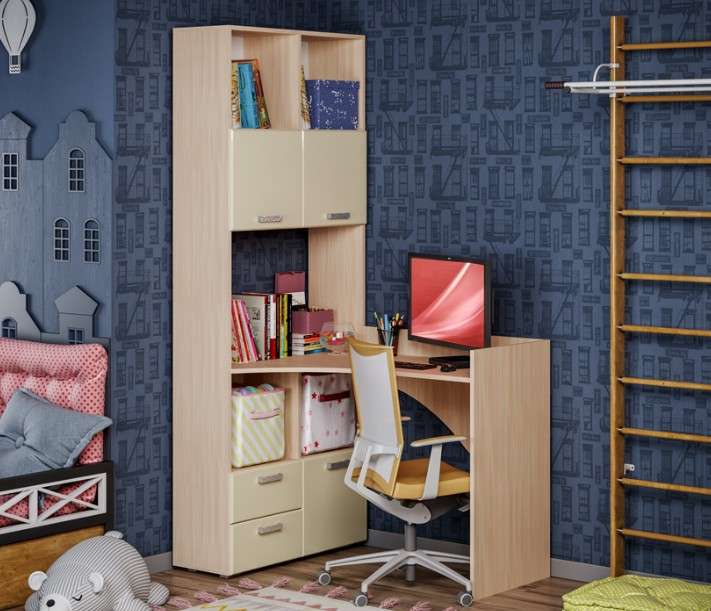 Идеальный вариант для школьников, включающий в себя функционал шкафа и письменного стола. Стол может быть изготовлен в зеркальном отображении, при заказе нужно обязательно уточнить.