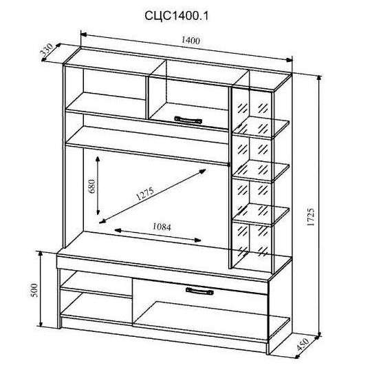 Габаритные размеры: Высота: 1725 мм / Ширина: 1400 мм / Глубина: 450 мм.