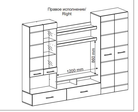 Ниша под ТВ: 1200х860 мм.