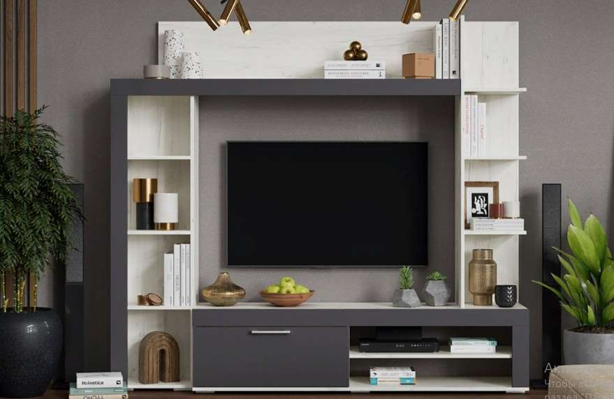 Гостиная «Аэлита» представляет собой единый модуль, который, благодаря большому количеству открытых полок и закрытой ниши, позволит разместить необходимое количество предметов декора и медийной техники. Продуманный дизайн, практичная фурнитура, легкость и вместительность- всем этим может похвастаться гостиная «Аэлита».