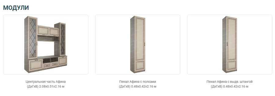 В нежных пастельных тонах выдержана гостиная «Афина». Эта мебель не просто создает уют в комнате, она привносит в атмосферу состояние счастья и благополучия. Ламинированное покрытие под беленный дуб смотрится естественно и респектабельно. Дверцы с декоративными стеклами делают гарнитур изысканным и стильным. Завершающим штрихом к дизайну служат аккуратные, надежные ручки к шкафам, тумбам и ящичкам.