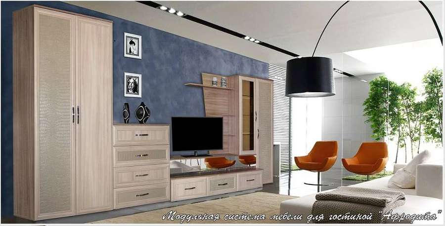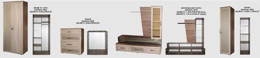 Размер модулей входящих в гостиную: (ШхВхГ).