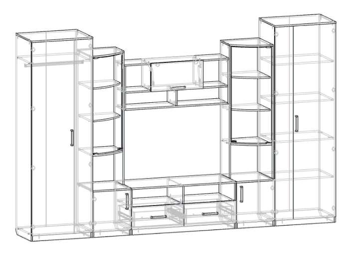 Цена указана за комплектацию на фото: Центральная часть, Шкаф с полками и Шкаф со штангой.