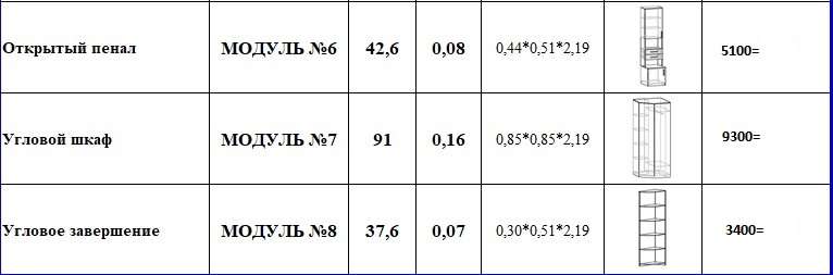 Стоимость угловой гостиной- 42000 руб, Размер : 1290/ 4030 х 510 х 2190, (ДхГхВ). Состав: Открытый пенал, Шкаф угловой, Пенал с полками, Центр, Пенал с полками, Угловое завершение.