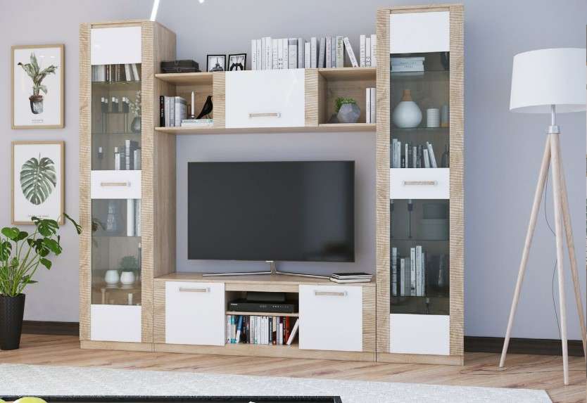 Гостиная «Элегия» модульная (Дуб Сонома/Белый глянец) PDM
