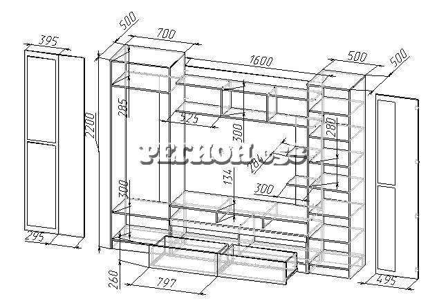 Размер: 2800х2200х500, (ШхВхГ). Ниша под ТВ 1300х1015.