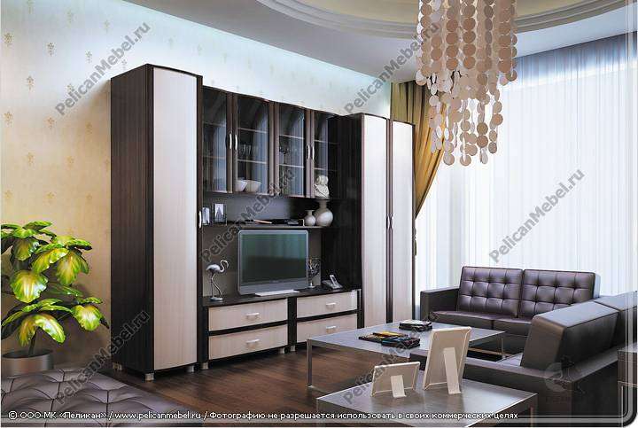 Эта модульная система отличается своей компактностью, легкостью, функциональностью. Стенка подойдет как в малогабаритную квартиру, так и в просторную гостиную.