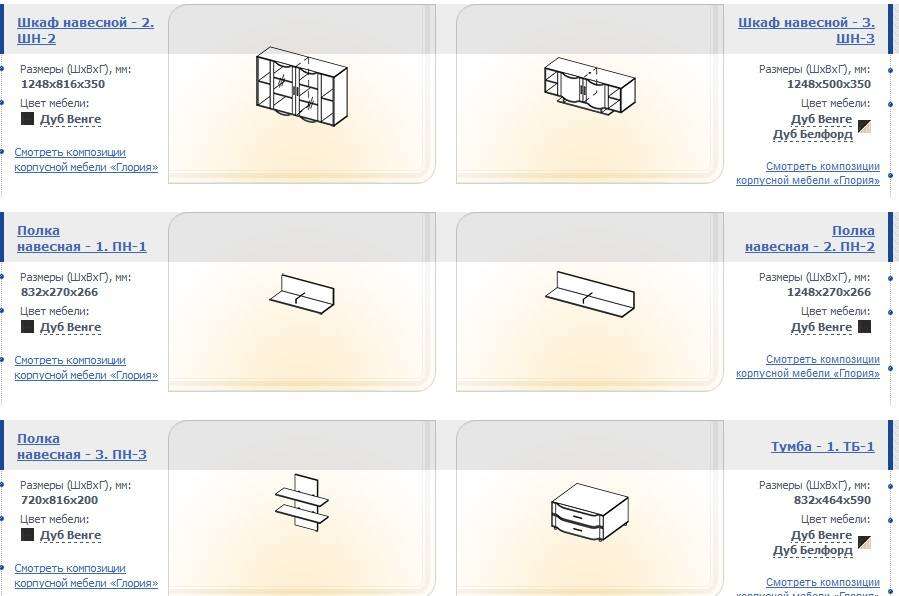 Модули, входящие в состав гостиной и их стоимость: